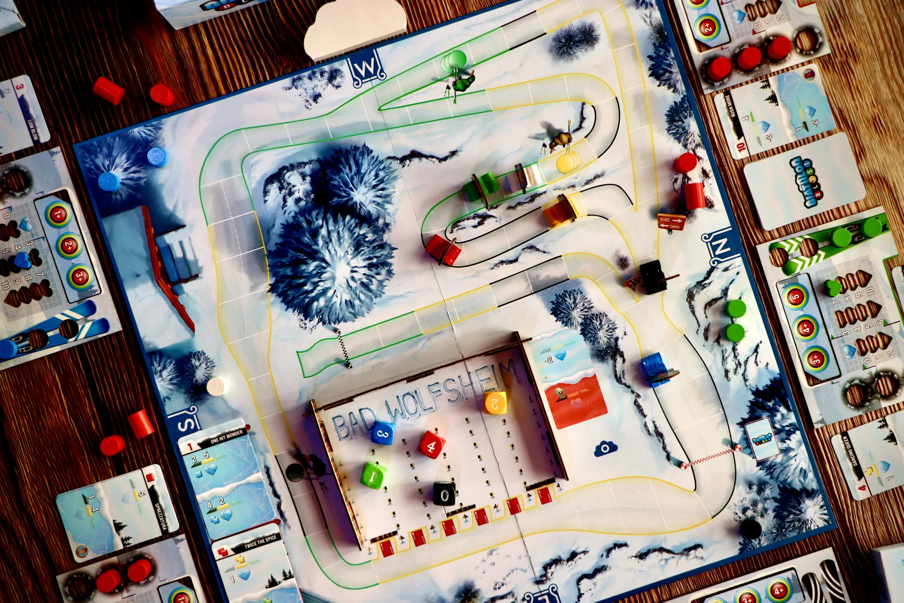 Het Biathlon Blast bordspel biedt veel variatie en herspeelbaarheid dankzij asymmetrische biatleten, meerdere baanindelingen en voortdurend veranderende windomstandigheden. Spelers beïnvloeden elkaar continu via positionering, drafting en tactische blokkades, waardoor elke race spannend blijft tot de finish.