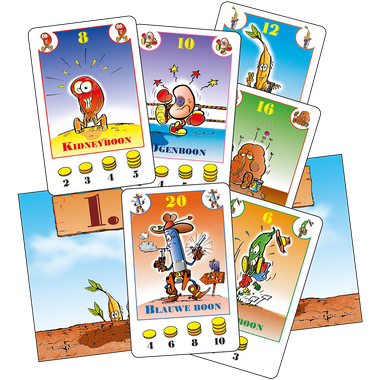 In Boonanza Kaartspel draait alles om slim handelen, zaaien en oogsten. Iedere speler start met vijf bonenkaarten in de hand, die je niet van volgorde mag wisselen. Dat simpele principe zorgt direct voor spannende dilemma’s.
