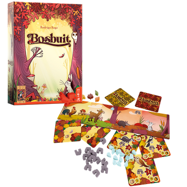 In Bosbuit Bordspel bouwen spelers beurt voor beurt hun eigen bos, bestaande uit een raster van maximaal 4 bij 4 kaarten. Elke kaart die je toevoegt, bevat paden, voedsel en dieren. Het is aan jou om deze zo slim mogelijk te plaatsen, zodat jouw dieren via de paden het beste voedsel kunnen bereiken.