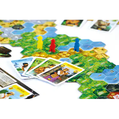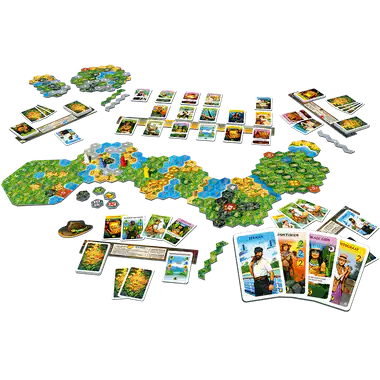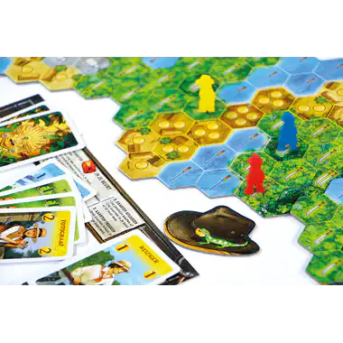 In De Zoektocht naar El Dorado bordspel ga je de strijd aan met andere expedities in een spannende race door dichtbegroeide jungles, gevaarlijke rivieren en mysterieuze gebieden. Elke speler begint met een basisset kaarten die zijn expeditie vertegenwoordigt. Met deze kaarten verplaats je je pion over het speelbord en koop je nieuwe kaarten om je deck steeds sterker en efficiënter te maken.