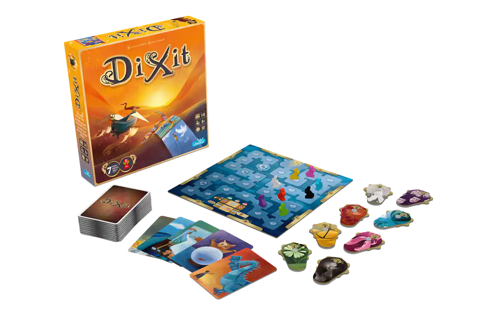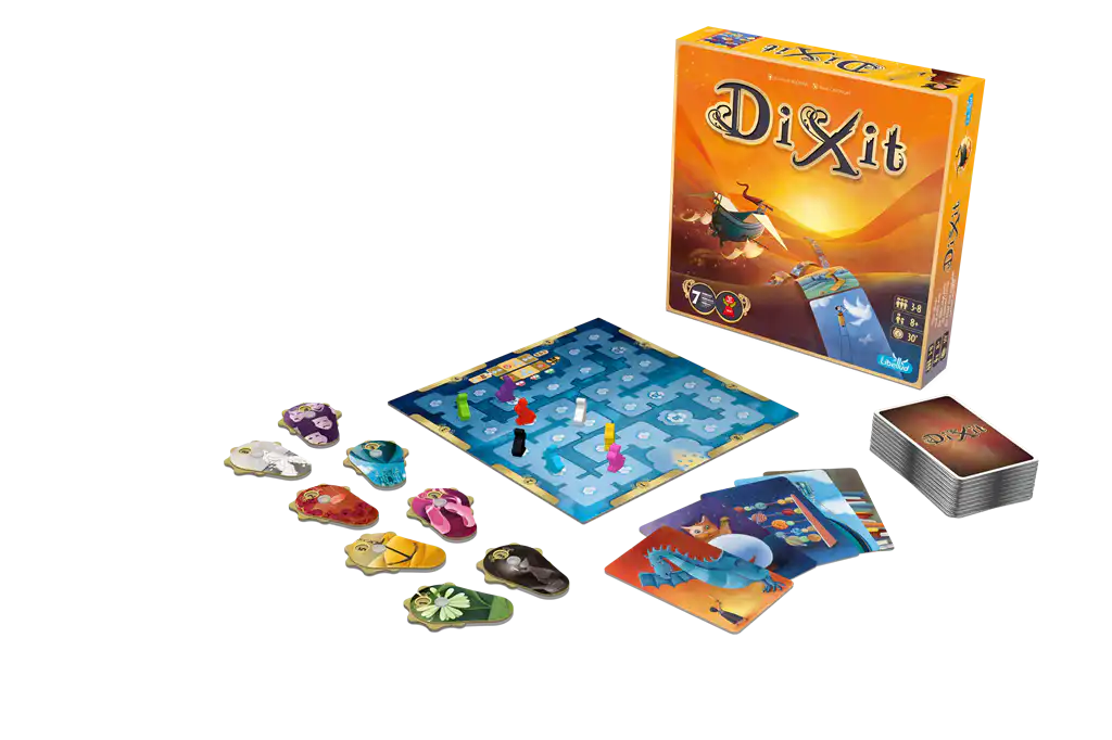 Dixit is een creatief associatiespel waarin je met subtiele hints en illustraties probeert anderen te laten raden wat jouw kaart is. De verteller kiest een kaart en geeft een hint in woord, zin of verwijzing.