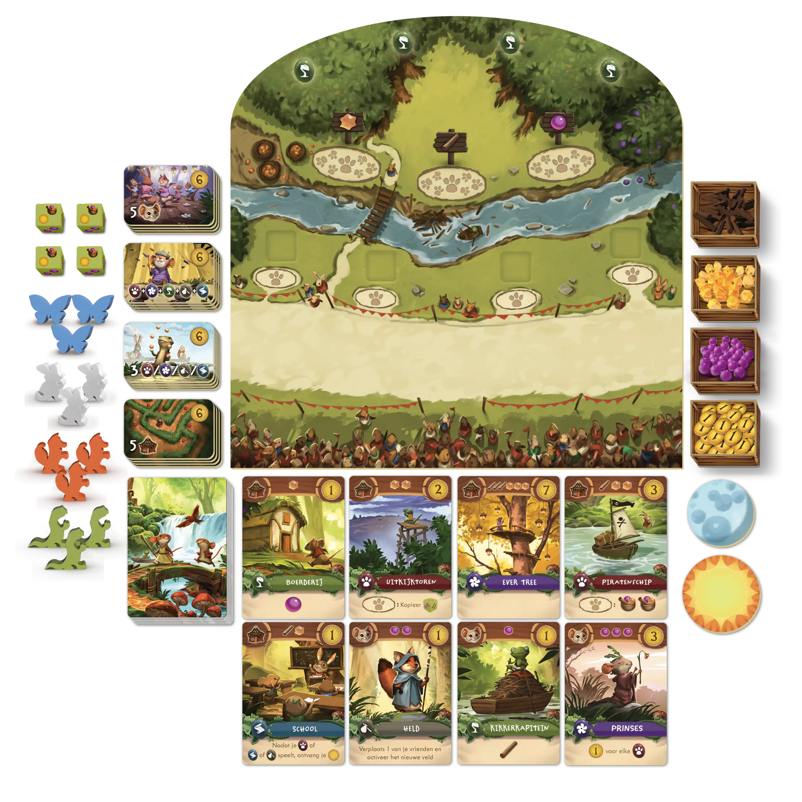 Everdell: Junior (1-4 spelers · 30 min · vanaf 8 jaar). Een toegankelijke kinderversie van Everdell waarin je grondstoffen verzamelt, kaarten speelt en je eigen stad opbouwt. Met eenvoudige keuzes en een vlot tempo leren kinderen spelenderwijs plannen en combineren. Perfect als eerste bouwspel, maar ook leuk voor volwassenen die een licht en sfeervol spel zoeken.