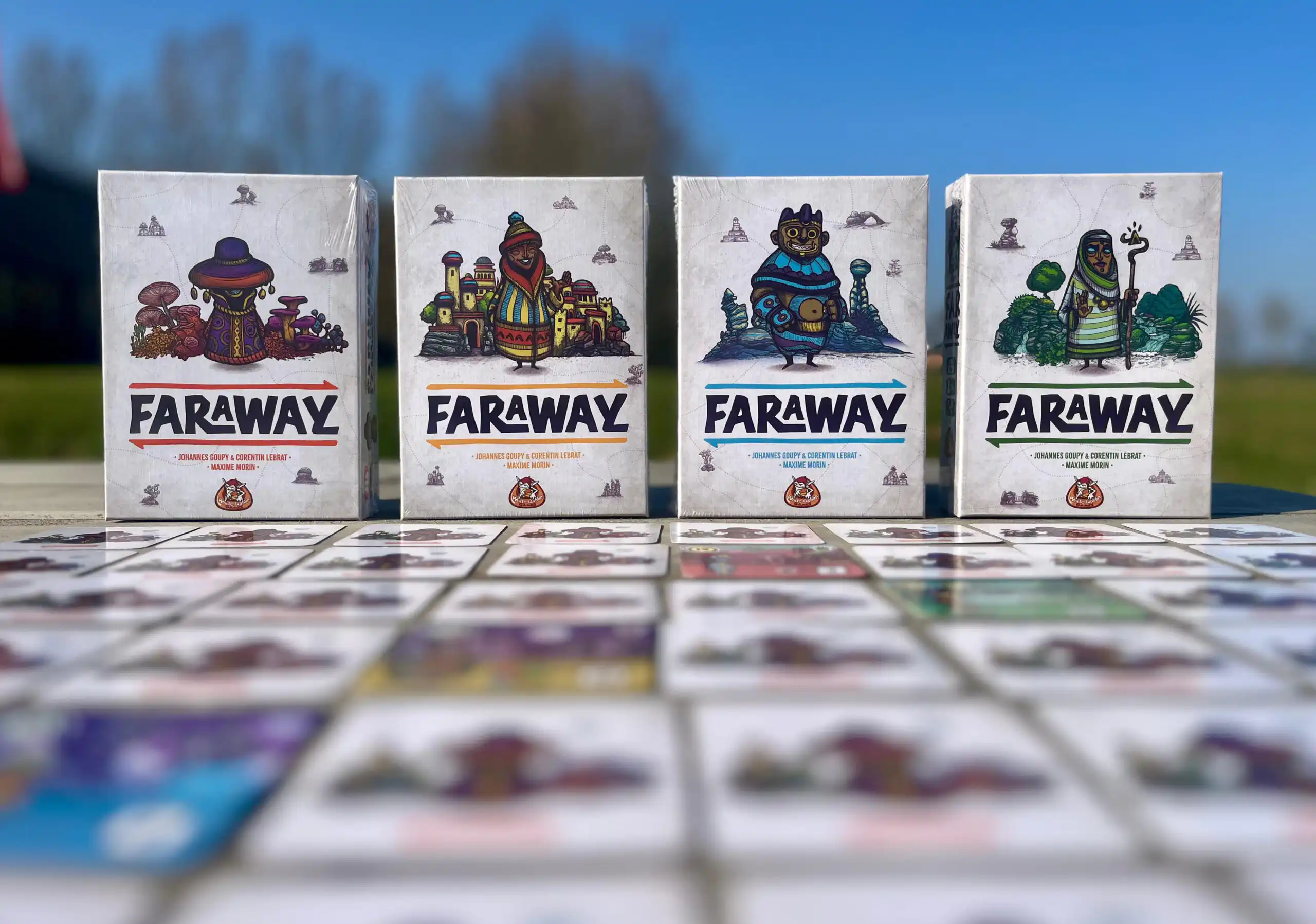 In Faraway verken je het mysterieuze land Alula door kaarten te spelen die samen een persoonlijke route vormen. Het bijzondere? Je speelt kaarten van links naar rechts, maar pas aan het einde van het spel ga je ze van rechts naar links scoren. Hierdoor moet je al tijdens de eerste rondes rekening houden met kaarten die pas veel later punten gaan opleveren.