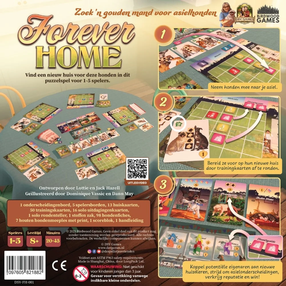 In Forever Home Bordspel NL kruip je in de rol van een asielmedewerker die honden een tweede kans wil geven. Door slim tegels te plaatsen en kaarten te combineren bouw je aan het beste opvangcentrum en help je zoveel mogelijk honden aan een gouden mand.