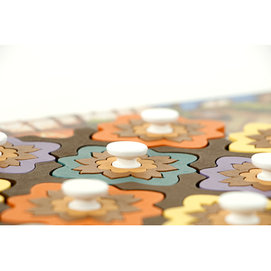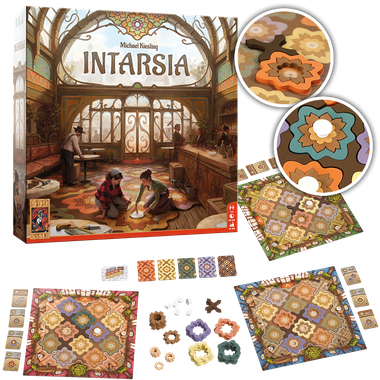 In Intarsia bordspel werk je aan het bouwen van decoratieve houten patronen op je eigen tableau. Met meer dan 150 gekleurde houten onderdelen voelt elke zet tastbaar en bevredigend aan. Tijdens een ronde kun je meerdere acties uitvoeren, waardoor het speltempo hoog blijft en je voortdurend betrokken bent.