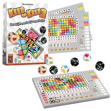 Keer op Keer 2 is het vervolg op het populaire dobbelspel Keer op Keer, met nieuwe dobbelstenen, extra spelregels en meer tactische uitdagingen.