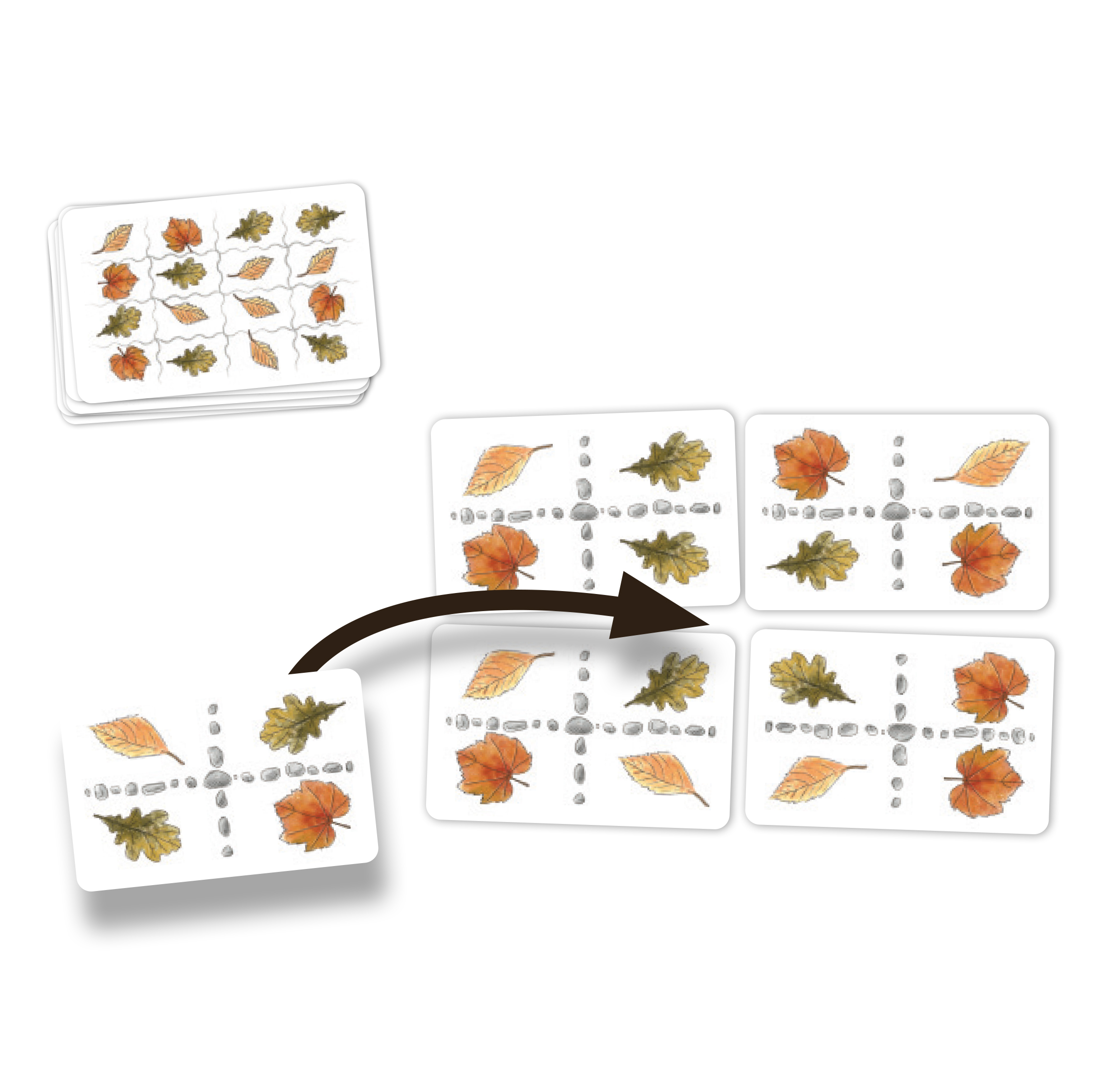 Elke speler beschikt over vijf puzzelkaarten. Vier kaarten vormen de basis, terwijl de vijfde kaart bovenop wordt gelegd. Op zowel de voor- als achterkant van de kaarten staan patronen met vier bladeren. Door slim te schuiven, draaien en plannen probeer je het patroon van de patroonkaart exact na te maken.