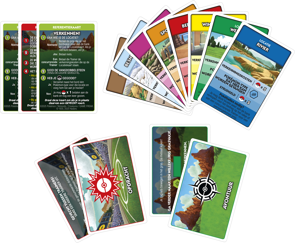Locaties variëren van bossen en steden tot sportscholen. Land je op een locatie die door een andere speler wordt gecontroleerd, dan kun je deze verkennen of de eigenaar uitdagen om de controle over te nemen. Met Avontuurkaarten en Uitdagingkaarten ontstaan onverwachte wendingen, trainergevechten en tactische voordelen.