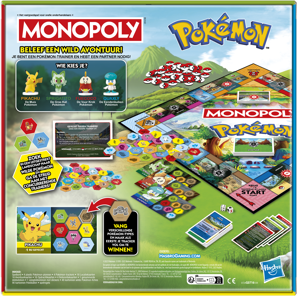 Ga op een spannend avontuur met Monopoly Pokémon, een speciale editie van het klassieke bordspel geïnspireerd door de wereld van Pokémon. In deze versie draait het niet om straten en geld, maar om locaties verkennen, Pokémon vangen en strategische trainergevechten aangaan.