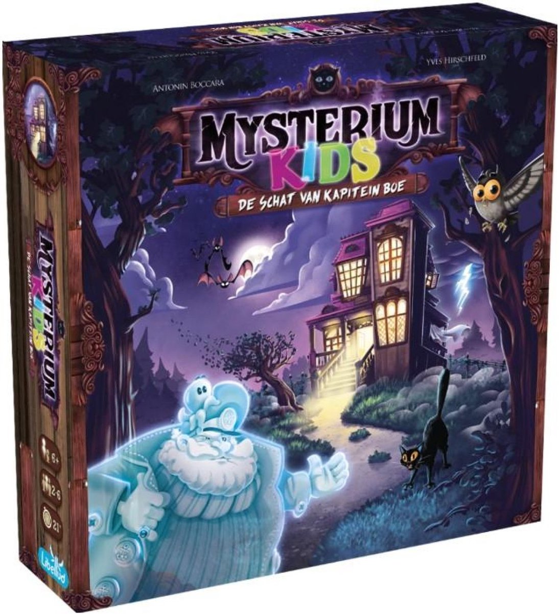Mysterium Kids – De schat van Kapitein Boe is een co-op kinderspel waarin je samen de schat van Kapitein Boe probeert te vinden via geluidshints en slimme teamkeuzes. Een speler geeft aanwijzingen met geluiden, de anderen interpreteren die op het bord en kiezen samen de juiste route.