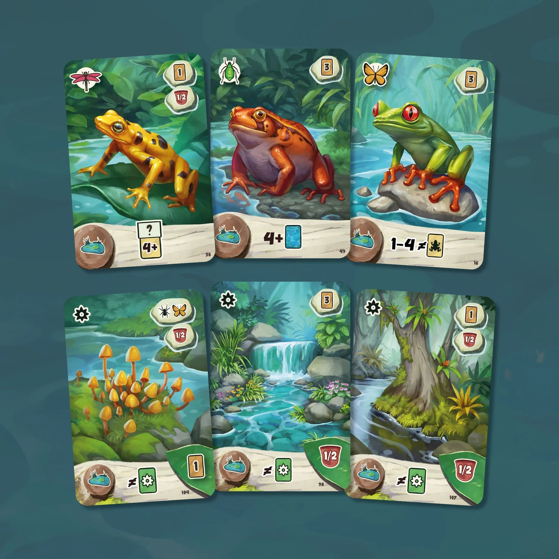 Elke ronde kies je kaarten uit een open markt en voeg je deze toe aan jouw persoonlijke vijver. Elke kikkersoort heeft unieke voorkeuren en scoort punten op basis van hoe goed jij aan die wensen voldoet. Hoe groter de groep van dezelfde soort, hoe hoger je beloning.