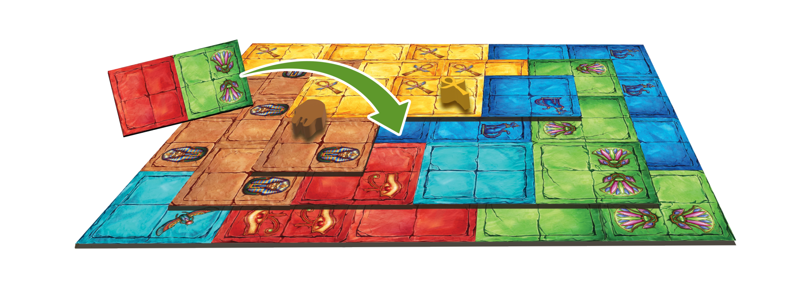 Het spel wordt gespeeld in vier fases, waarbij je telkens een nieuwe laag aan je piramide toevoegt. Elke laag bestaat uit zorgvuldig geplaatste bouwtegels die moeten voldoen aan strikte bouwregels. De positie en kleur van deze tegels bepalen welke juwelen je kunt plaatsen en hoeveel punten je scoort.