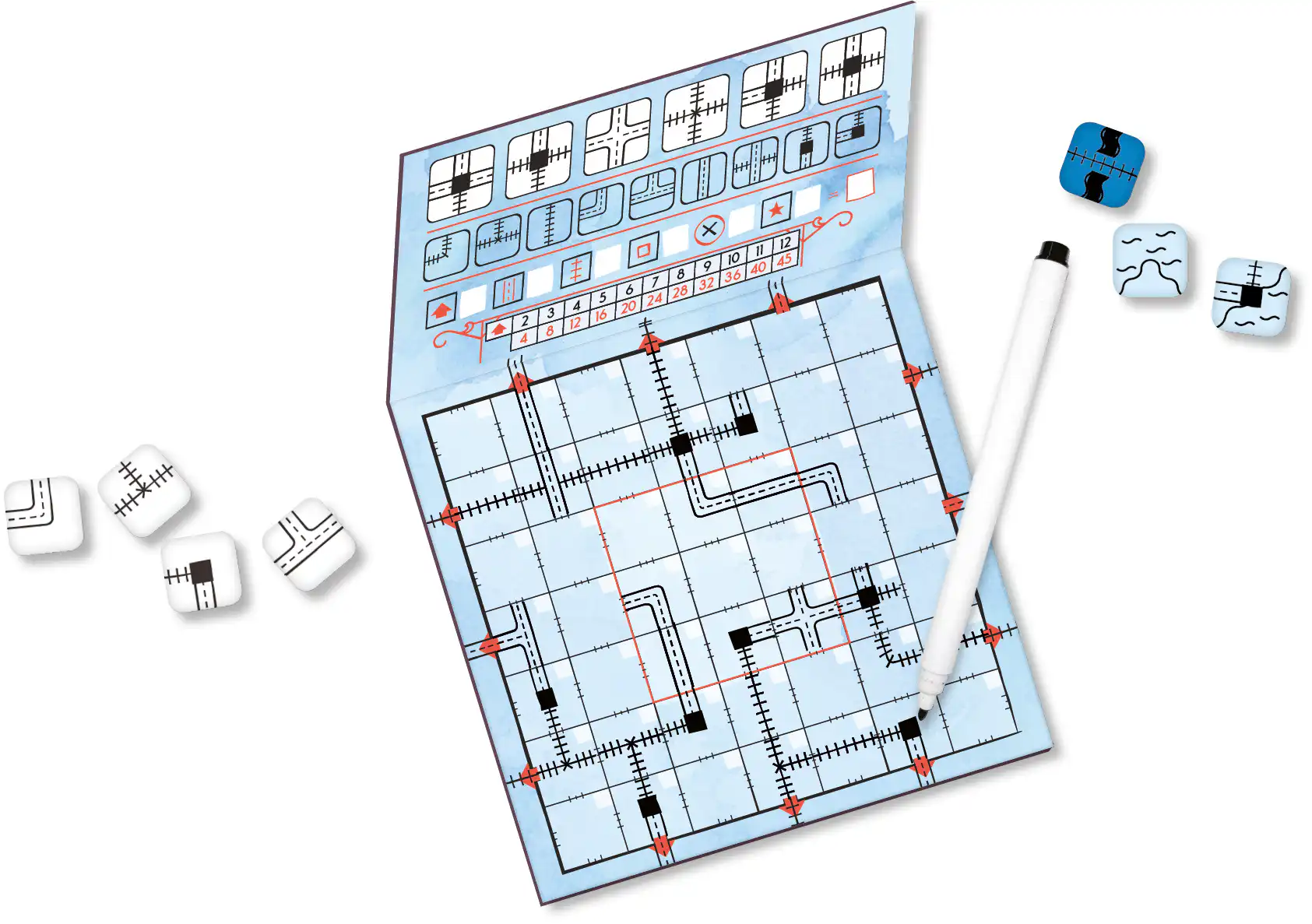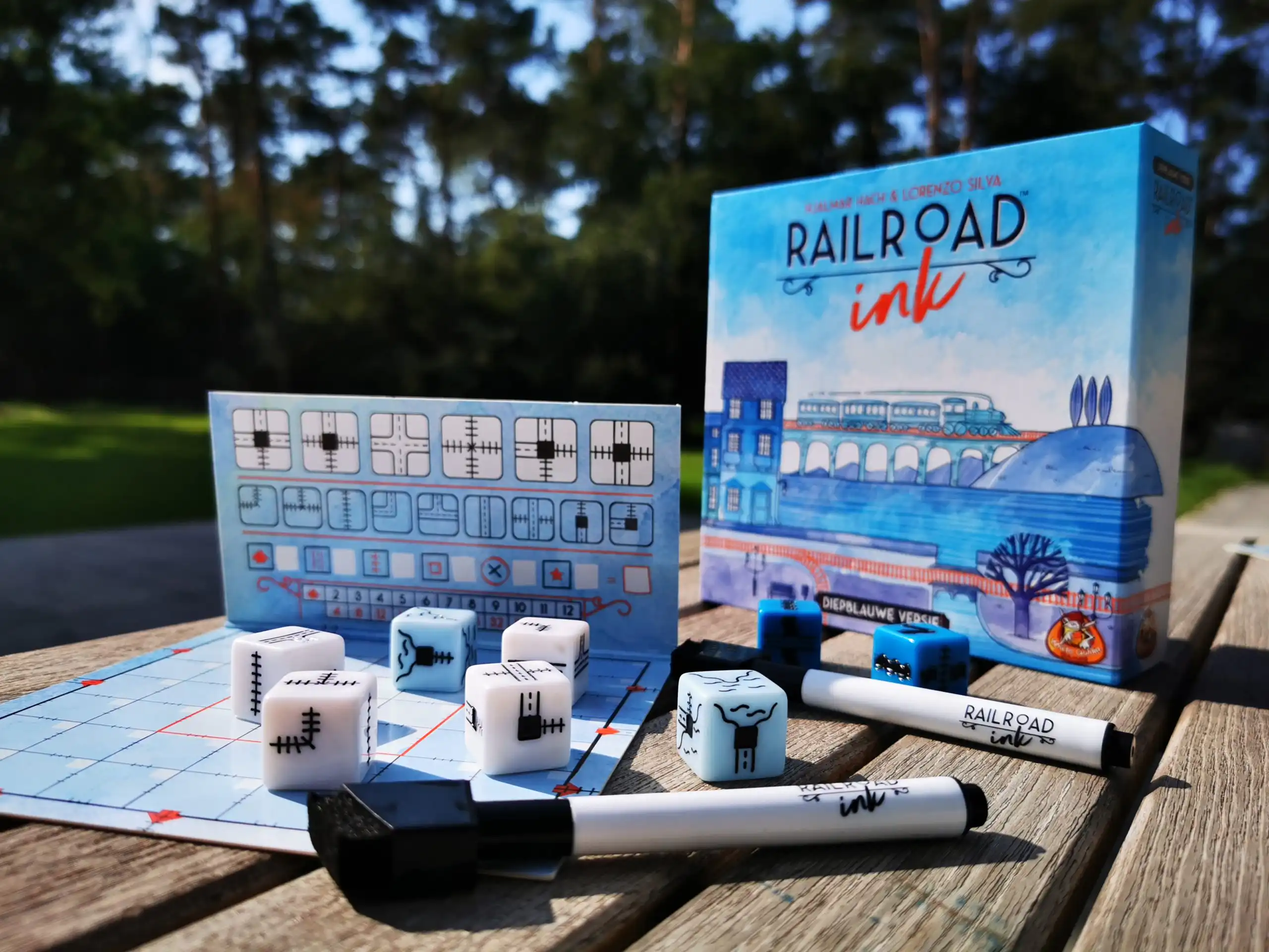 De trein vertrekt! In Railroad Ink draait alles om het slim aanleggen van netwerken. Elke ronde worden dobbelstenen gegooid die bepalen welke routes je mag tekenen. Alle spelers gebruiken dezelfde worp, maar iedereen puzzelt op zijn eigen speelbord om het beste netwerk te creëren.