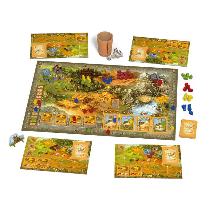 Door slim grondstoffen te verzamelen en te investeren in gezinsuitbreiding, verkrijg je meer acties in latere rondes. Bouw hutten en verzamel beschavingskaarten om overwinningspunten te verdienen. Elke speler kiest zijn strategie: ga je voor snelle grondstoffen, stabiele voedselproductie, of maximale ontwikkeling?
