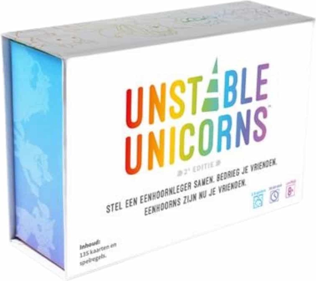 Unstable Unicorns is een kaartspel waarin je een unicorn-stal opbouwt en tegelijk plannen van anderen saboteert met directe kaart effecten. Unstable Unicorns is schattig van buiten en genadeloos aan tafel. Het thema zit in het bouwen van je eigen stal vol unicorns, terwijl je met magische en gemene kaarten de stallen van anderen overhoop haalt.